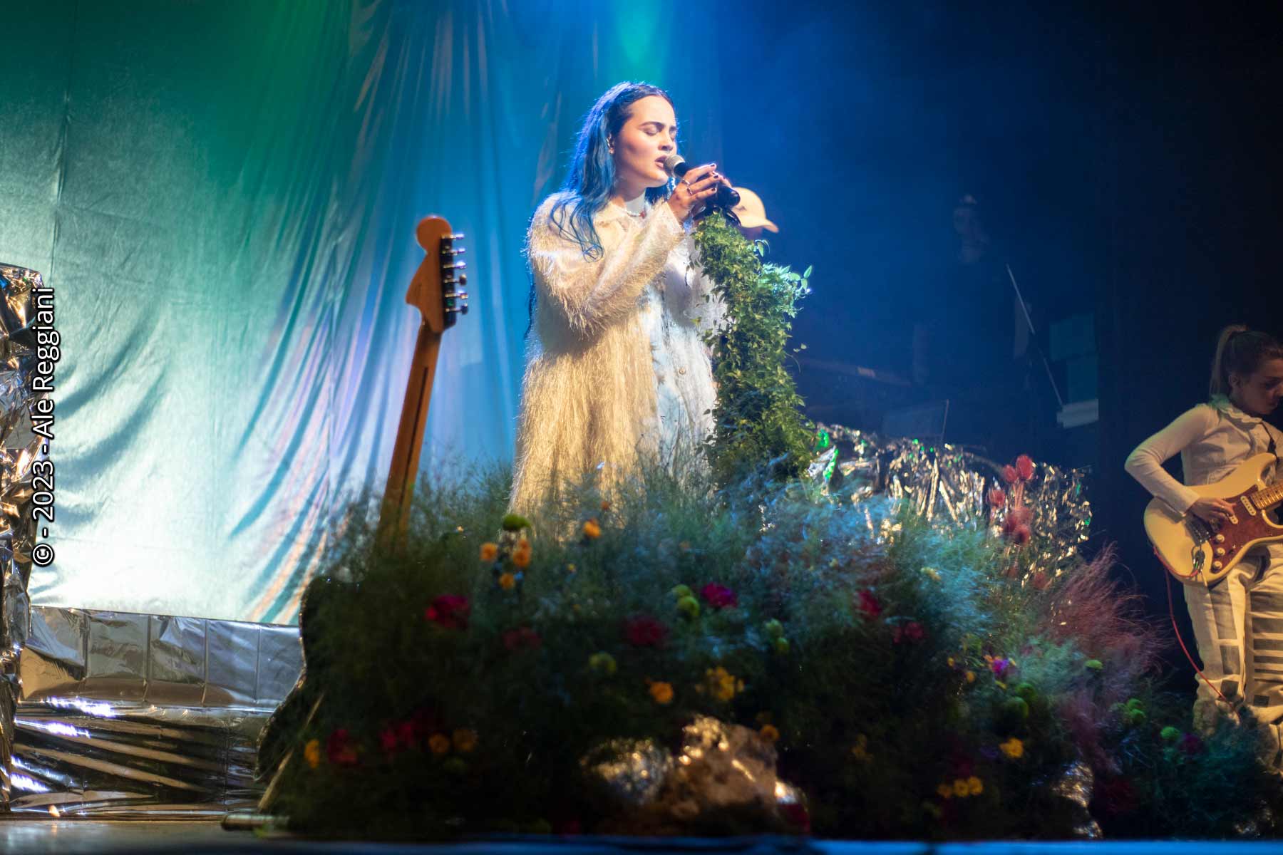 Estoy flotando”, confesó Anyi a la audiencia la música antes de entonar “Caramelo roto”. Después, continuó el set con varios de los tracks de su debut discográfico, Crucero Cristal (2019). Con el clima encendido, llegaron las primeras invitadas de la noche. Curiosamente, también, se trató de otra agrupación oriunda de la capital bonaerense: Amparo Torres -guitarra- y Elena Radiciotti -bajo-, ambas de Isla Mujeres más el aporte de Melanie Williams en batería para interpretar “Máscara de miel”.
