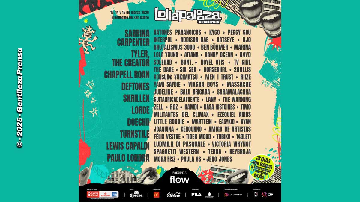 Además se presentarán estrellas mundiales como Lorde, Skrillex, Lewis Capaldi, Interpol, Doechii, Viagra Boys y Addison Rae. También contará con presencias nacionales muy fuertes como Ratones Paraoicos, Paulo Londra, Rey Bruja, Militantes del Climax y Massacre.