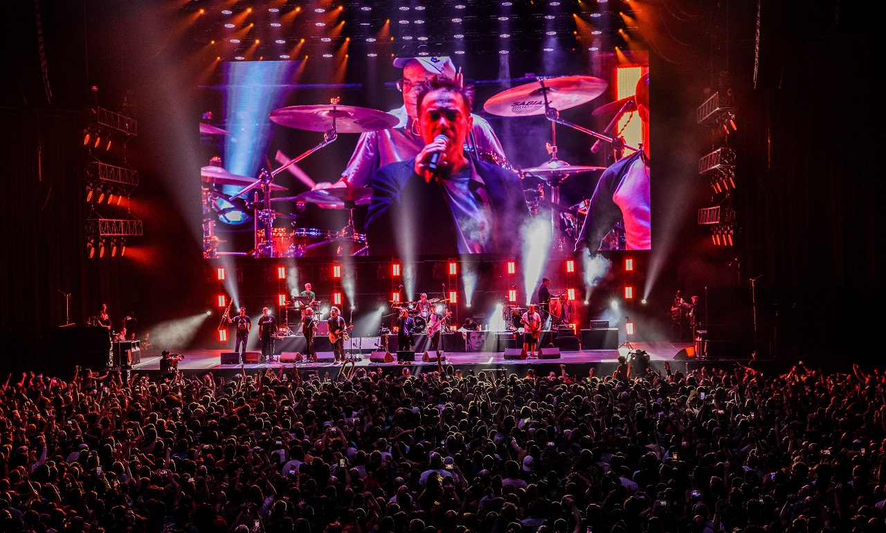Y llega el mejor bloque de la noche de la mano de temazos no tan hiteros, pero adorados por el público más fiel: el rocksteady con estribillo hardcore “El aguijón”, la cancionera “Nro. 2 en tu lista” (el mejor tema de los Cadillacs, tóquenlo siempre, ¡por favor!), la desgarradora “Basta de llamarme así” en su versión reggae original con Rotman luciéndose en el saxo, y la beatlera “Saco azul”, esta vez sin Valeria Bertuccelli recitando, pero con su hijo menor, Vicho, acompañando a su hermano Florián en la guitarra.