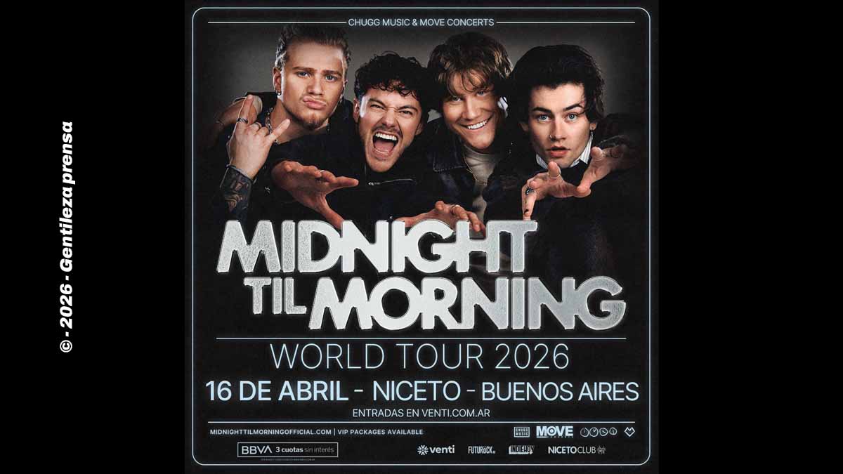 La banda estadounidense-australiana Midnight Til Morning formada en tiempo real en el show “Building the Band” de Netflix llega a nuestro país por primera vez en el marco de su gira World Tour 2026. La fecha es el jueves 16 de abril en Niceto Club (Niceto Vega 5510).