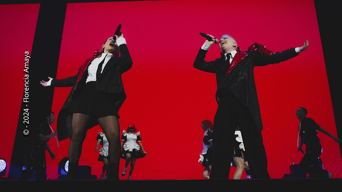 Ya arriba de las tablas, continuaron con “Nadie como tú” y casi ininterrumpidamente con numerosos hits de toda su obra. Incluyeron, además, aquellas colaboraciones que se encuentran en el mencionado registro, con grabaciones que se proyectaban en la enorme pantalla ubicada en el fondo del escenario. Tal fue el caso de “Uno los dos” -con la voz de Emilia-, “Dos” -con Dillom-, “Tu misterioso alguien” -donde se lo pudo ver y escuchar a Andrés Calamaro-, la versión 2023 de “Perfecta”, con las voces grabadas de María Becerra y FMK; también hicieron lo mismo en “Yo te diré” -con Lali– y “Siempre que lo beso” -que contó con la mexicana Kenia OS-.