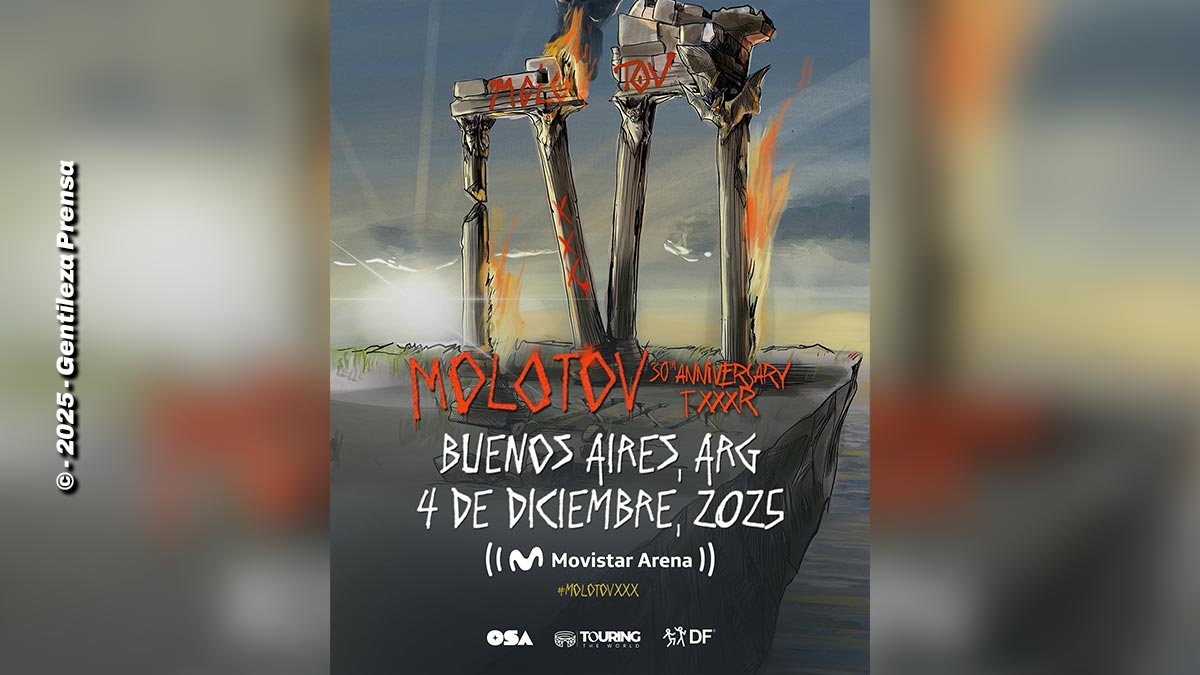 Molotov regresa a Buenos Aires como parte de su tour mundial “MOLOTOV TXXXR – 30 Aniversario“, con una fecha confirmada para el miércoles 4 de diciembre en el Movistar Arena. Tras haber dado inicio a esta gira en México, el grupo ícono del rock en español vuelve al país para repasar tres décadas de hits cargados de energía, crítica social y potencia sonora.