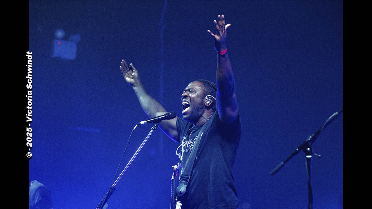 La felicidad no sólo se observó en la concurrencia, también fue posible apreciarla en la sonrisa de Okereke, quien si bien no interactuó demasiado con el público local, salvo algunas excepciones, sí se lo vio emocionado por semejante recibimiento. El calor que tanto deseaba encontrar para paliar el frío de su ciudad natal, según confesó en una entrevista previa a Revista El Bondi, lo obtuvo a partir de la celebración que le brindaron sus fans en el teatro de Colegiales.