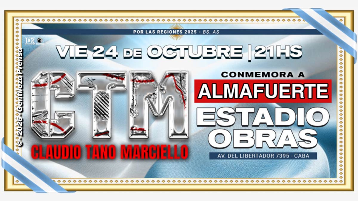 Durante la presentacion de su nuevo trabajo ”vive”, Claudio ”El Tano” Marciello anuncio una nueva conmemoración a Alma Fuerte y el legado de Ricardo Iorio el día viernes 24 de Octubre en el estadio Obras Sanitarias.