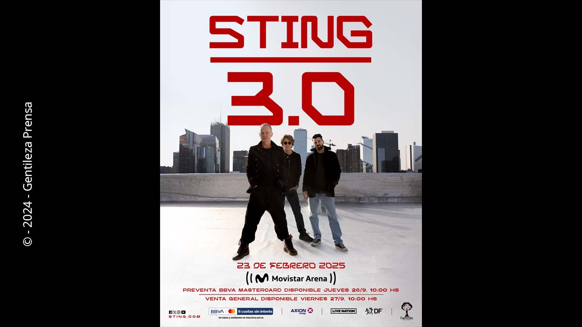 A más de 45 años de su primera visita al país con The Police, Sting vuelve a reencontrarse con el público local, uno de los más fieles que tiene en el mundo. El tour “Sting 3.0” lo encuentra en formato de trío junto al eximio guitarrista Dominic Miller y el virtuoso baterista Chris Maas, repasando los grandes éxitos tanto de su carrera como solista como junto a la icónica banda The Police.