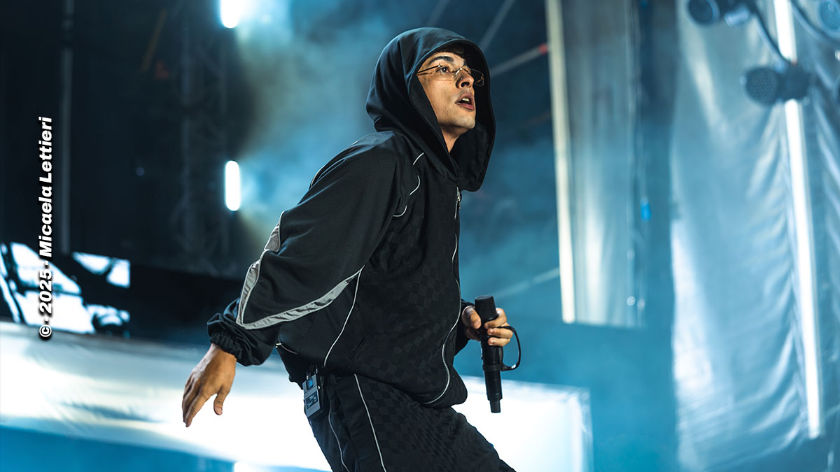 Cuando parecía que la noche comenzaba a apaciguarse y acercarse a su final, el joven rapero regresó al escenario acompañado por un grupo de enmascarados. A través de las pantallas, comenzó a organizar al público del campo bajo la premisa: “Vamos a hacer algo histórico”.