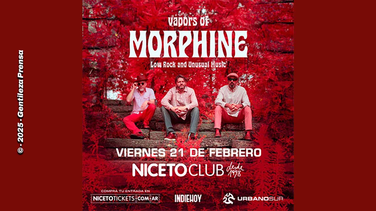 El trío que honra el legado de Morphine llega al país para interpretar las canciones más destacadas de la banda que llegó a su fin luego de que en 1999 falleciera su cantante, compositor y bajista Mark Sandman en un festival italiano. Vapors of Morphine se conforma por Dana Colley -cofundador y saxofonista de Morphine-, Jeremy Lions -multiinstrumentista y guitarrista- y Tom Arey -baterista-.
